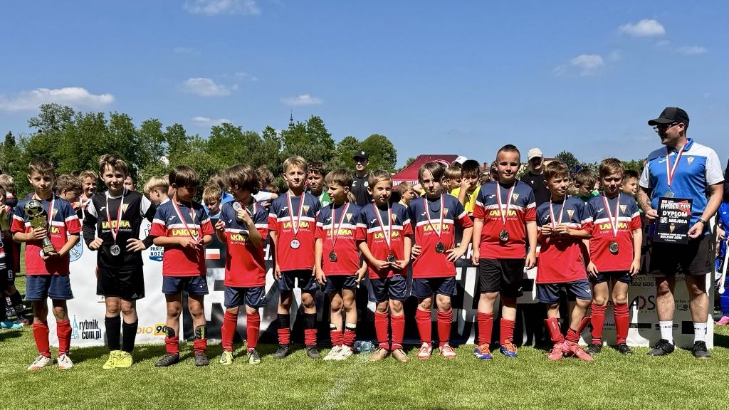 Orlik młodszy (rocznik 2015 i młodsi) wziął udział w międzynarodowym turnieju Rymer Cup w Rybniku. W zmaganiach wzięło udział 12 zespołów z różnych części regionu, a poziom rywalizacji był naprawdę wysoki. Nasza drużyna zaprezentowała się z bardzo dobrej strony. Od samego początku pokazaliśmy zaangażowanie, walkę o każdą piłkę i świetne przygotowanie. W fazie grupowej wygraliśmy wszystkie mecze co dało awans do fazy pucharowej, która była prawdziwym widowiskiem. Mimo dużego wysiłku i kilku dogodnych sytuacji bramkowych w finałowym meczu, musieliśmy uznać wyższość rywala. Uważam, że 2 miejsce jest ogromnym sukcesem i powodem do dumy. Dziękujemy rodzicom za doping i wsparcie z trybun – Wasza obecność jest nieoceniona!